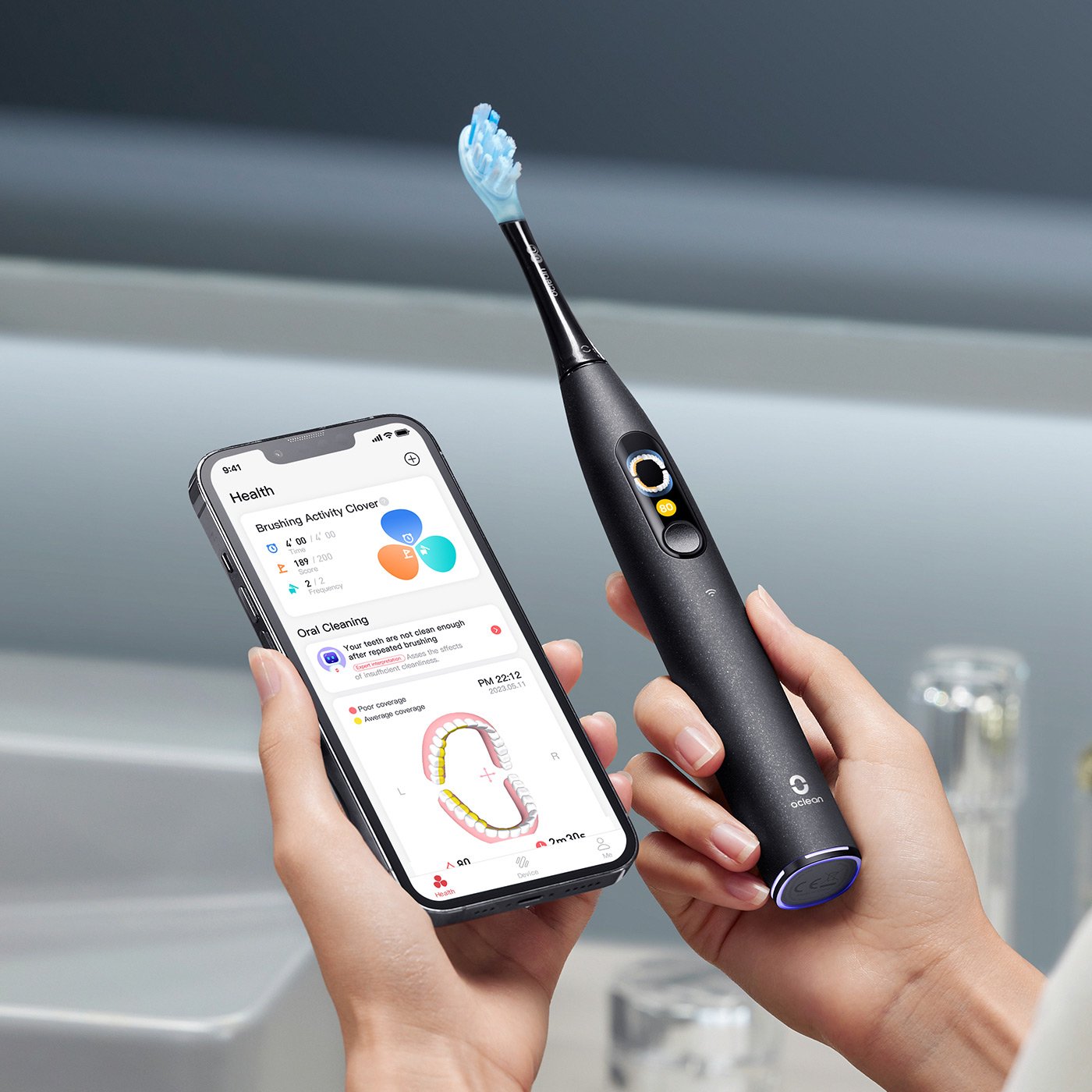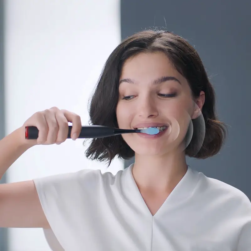 Oclean'in kendi geliştirdiği akıllı çip ve Yapay Zeka kemik iletim teknolojisi sayesinde diş fırçalama durumunuzu gerçek zamanlı olarak toplar ve geri bildirim sağlar