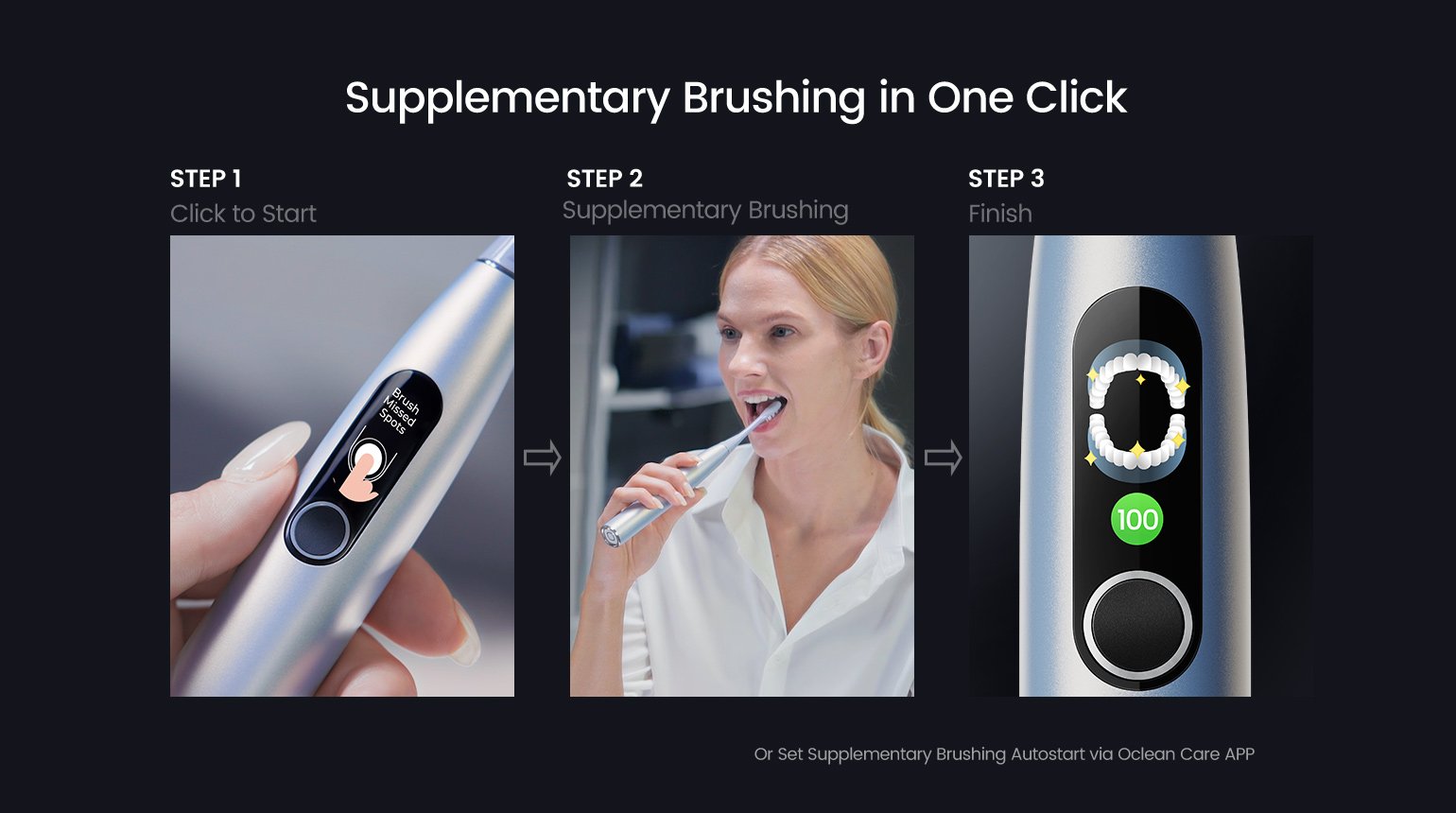 *Oclean Care+ APP 提供指导,通过指导个性化您的清洁,指导您刷牙的方式、时间和地点。