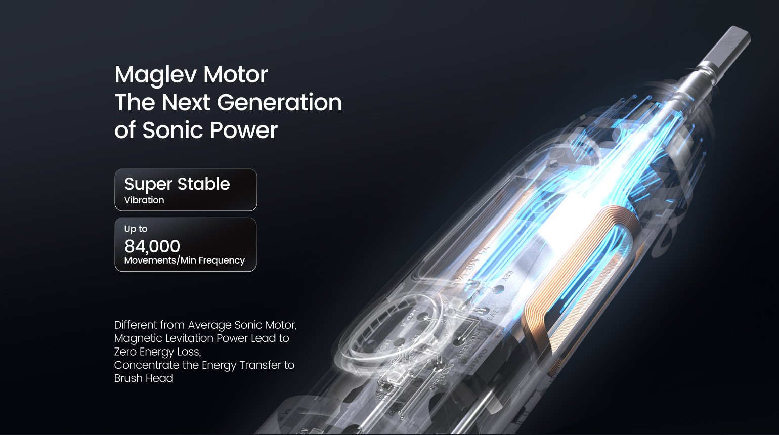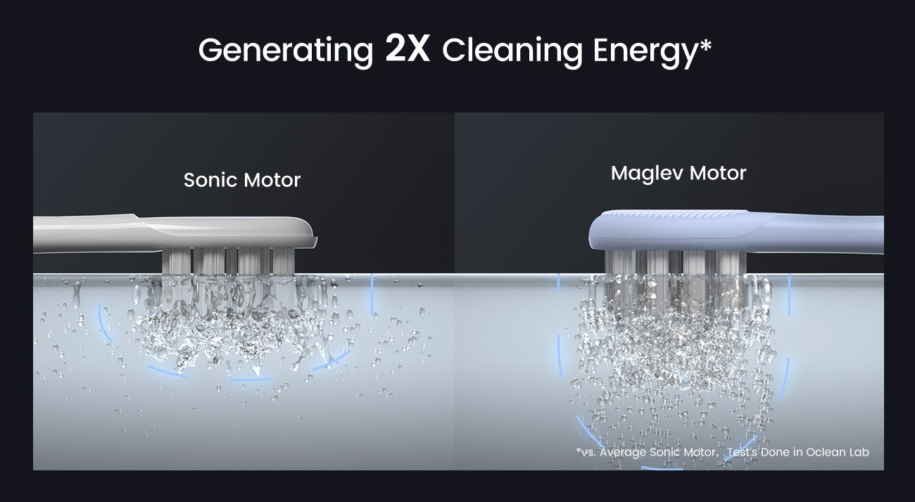 Oclean磁悬浮电机,下一代声波电机,零能量损失,5倍稳定振动,带来最佳舒适度。